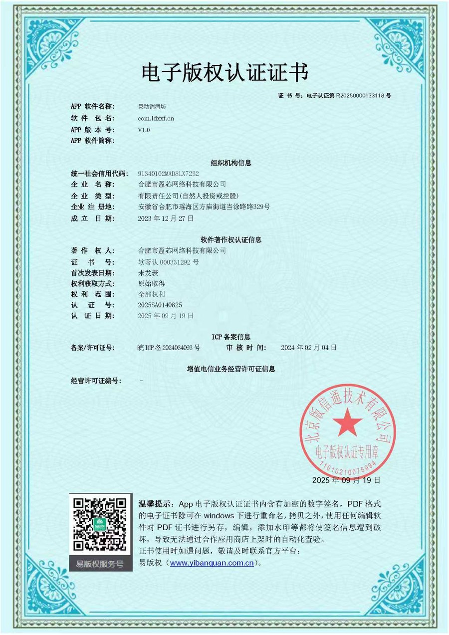 The listed software copyright certificates identify Hefei Yingxin Network Technology Co., Ltd. as the copyright owner. If ZKJDFHD LLC is the publishing or operating entity for submission, a signed authorization letter should be prepared and submitted together with the platform qualification materials.
